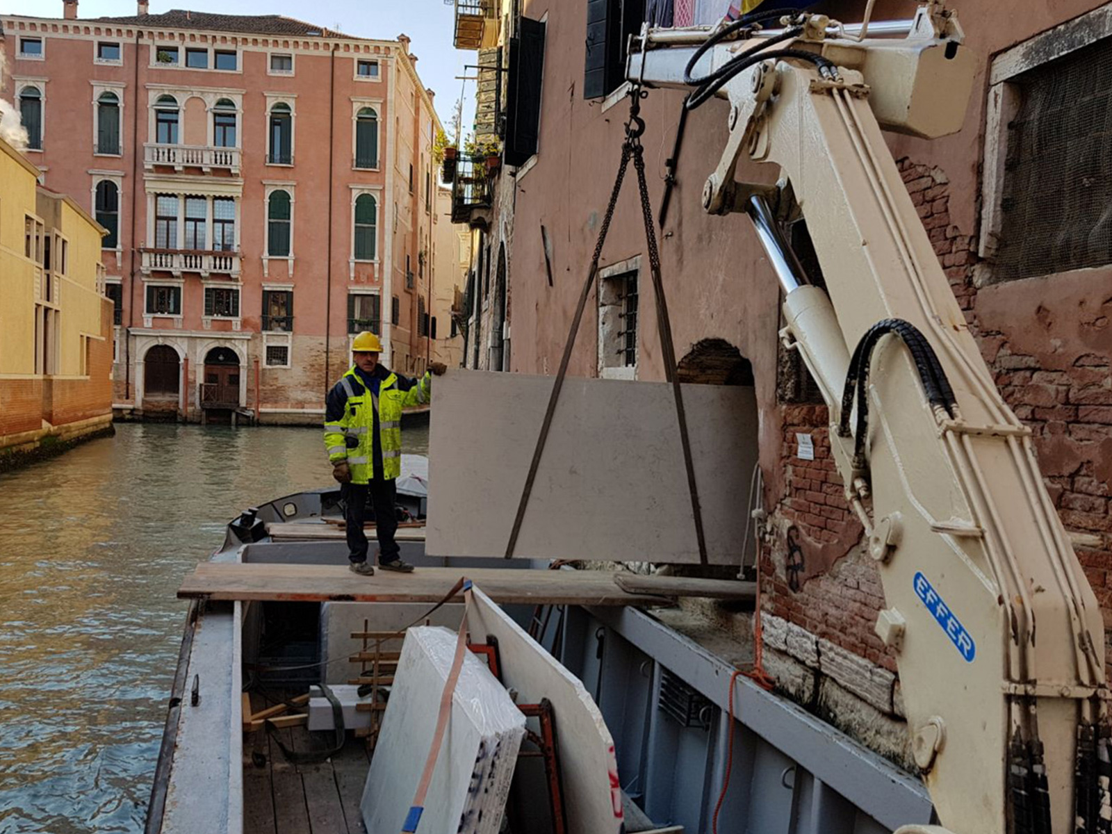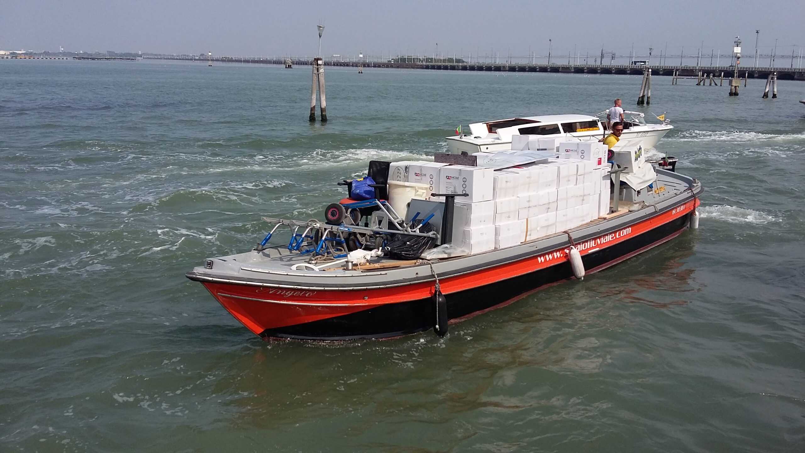 Con 18 motobarche di varie dimensioni, di cui 5 dotate di gru idrauliche, e la possibilità di combinarle con mezzi via terra (camion e furgoni), il trasporto merci è un servizio completo che soddisfa varie esigenze.